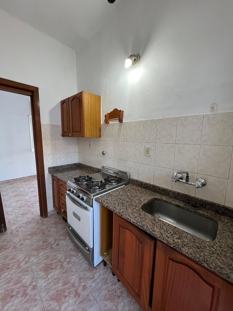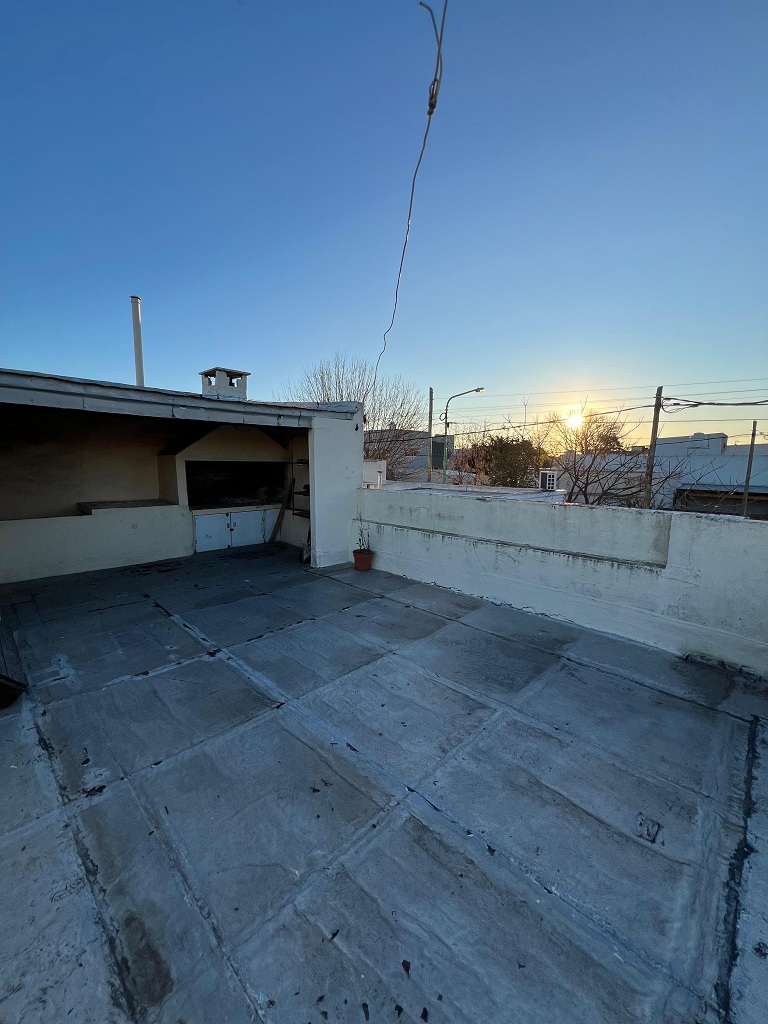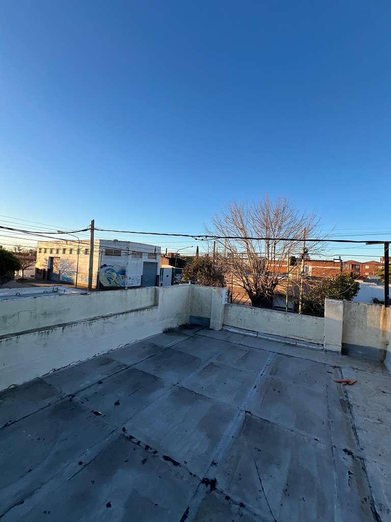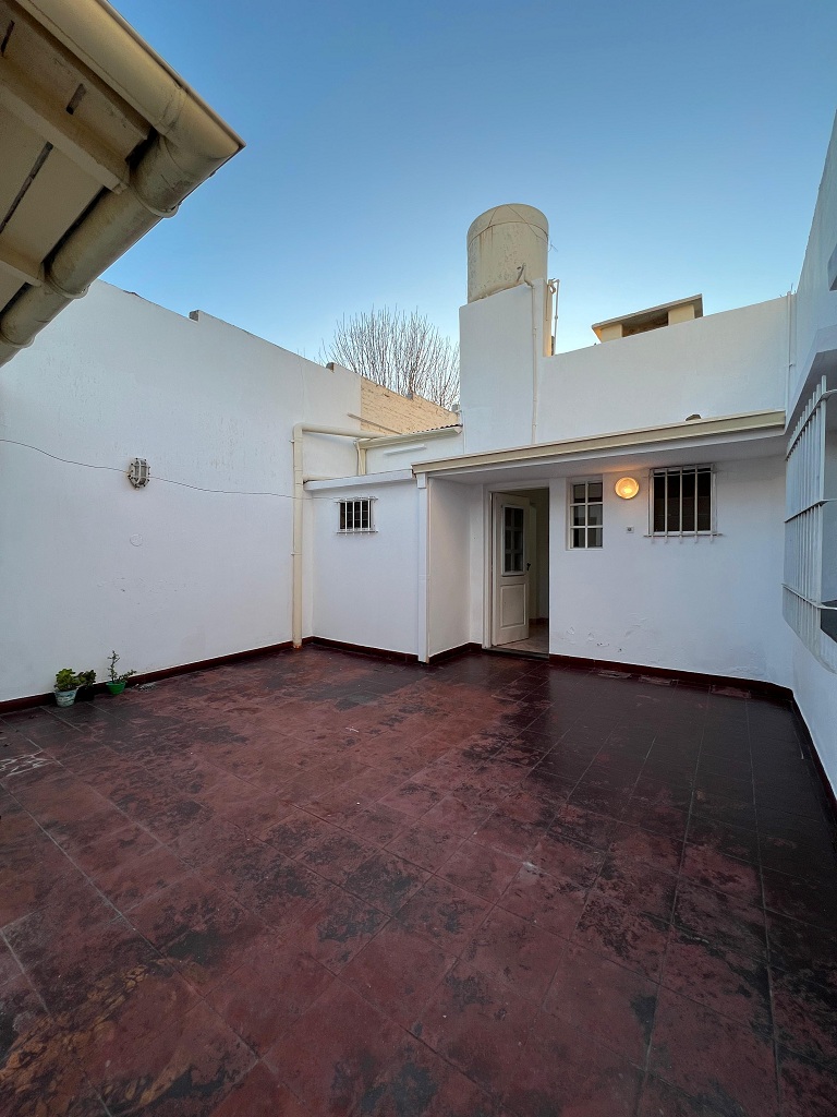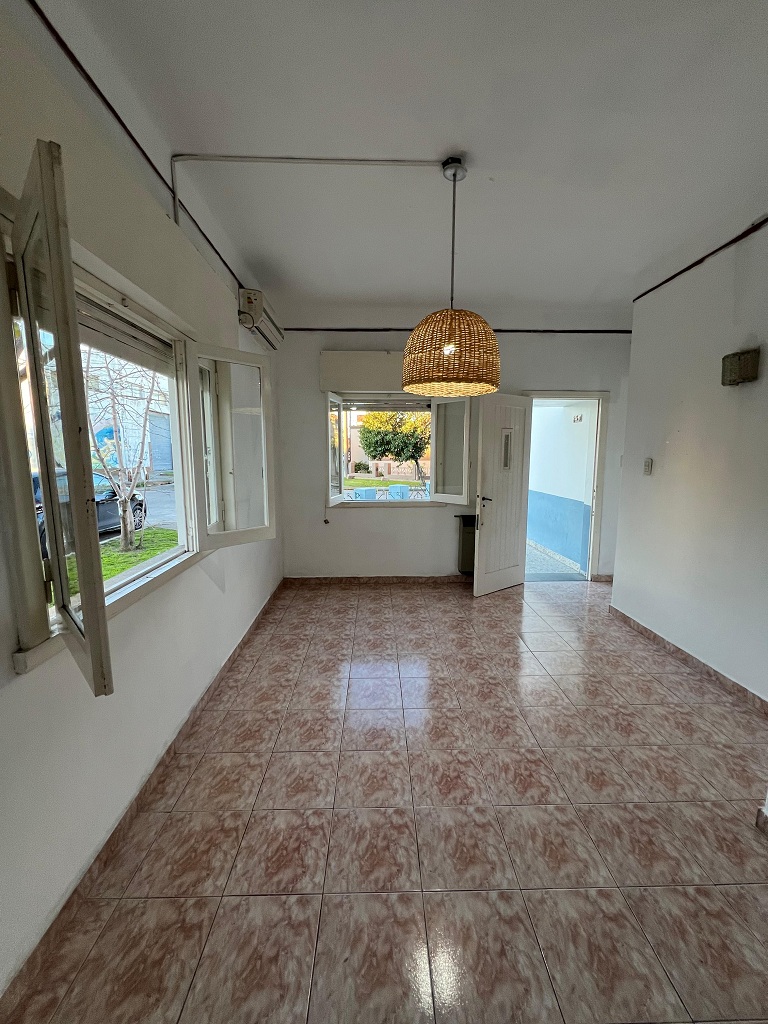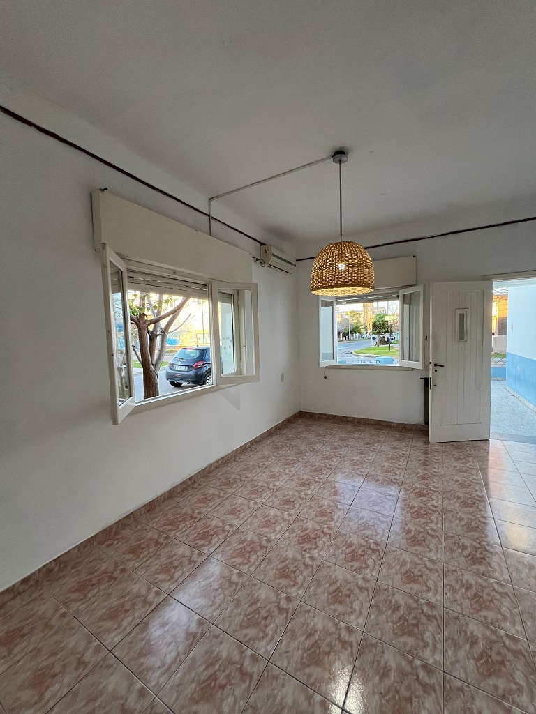 Alquilamos una casa en esquina muy luminosa. Se ingresa a living comedor con aire acondicionado, cocina, dos dormitorios con placard, patio, lavadero con cocina, baño auxiliar, y cochera para dos autos. Por escalera se accede a terraza con parrilla.