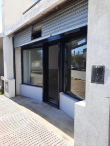 Cochera semicubierta con techo de cinc para un auto chico o mediano.