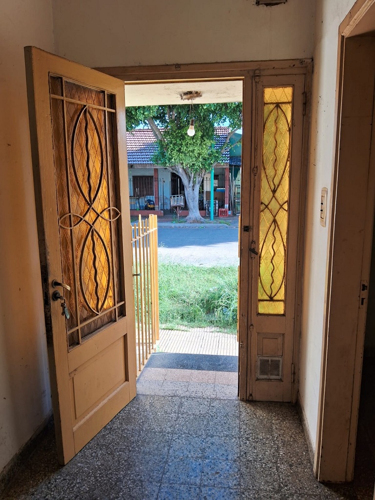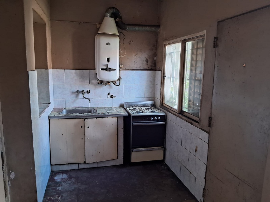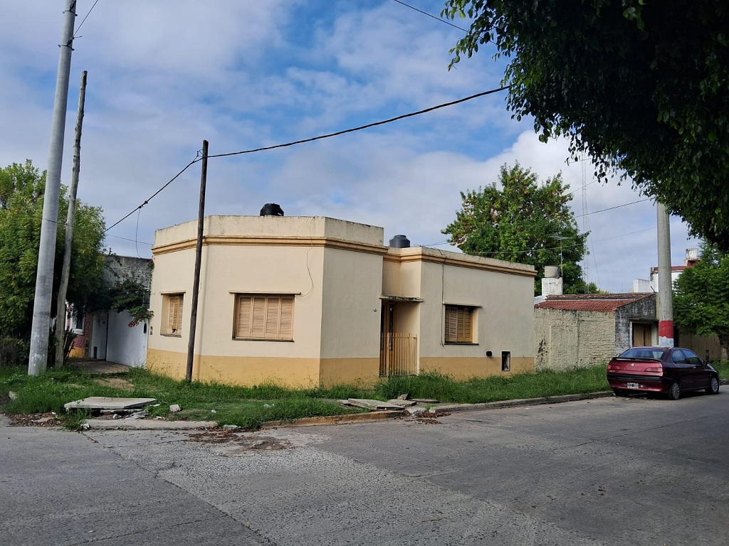 Vendemos una casa de material a reciclar sobre esquina. La misma cuenta con living, cocina comedor, baño, dos dormitorios con pisos parquet, patio con espacio verde y garage semicubierto.